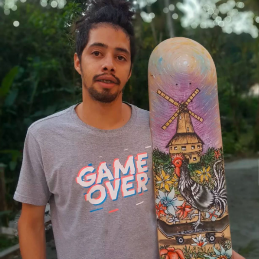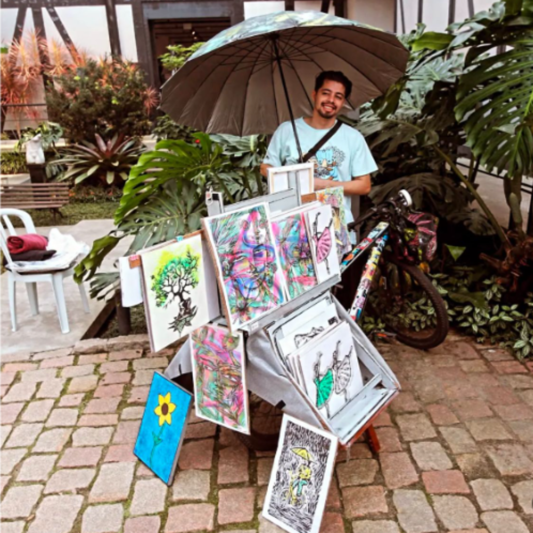 Olá! Me chamo Daniel, sou artista desde 2012. Natural de São Paulo, minhas artes e técnicas variam entre pintura em tela, graffiti e xilogravura. Em meus trabalhos, gosto de desenhar pontos turísticos dos locais que conheço, natureza e personagens. Já participei de exposições de arte em Joinville, como o Salada Cultural, e em São Paulo, como a Feira das Ideias e Feira Miolos, que ocorreu na Biblioteca Mário de Andrade.
