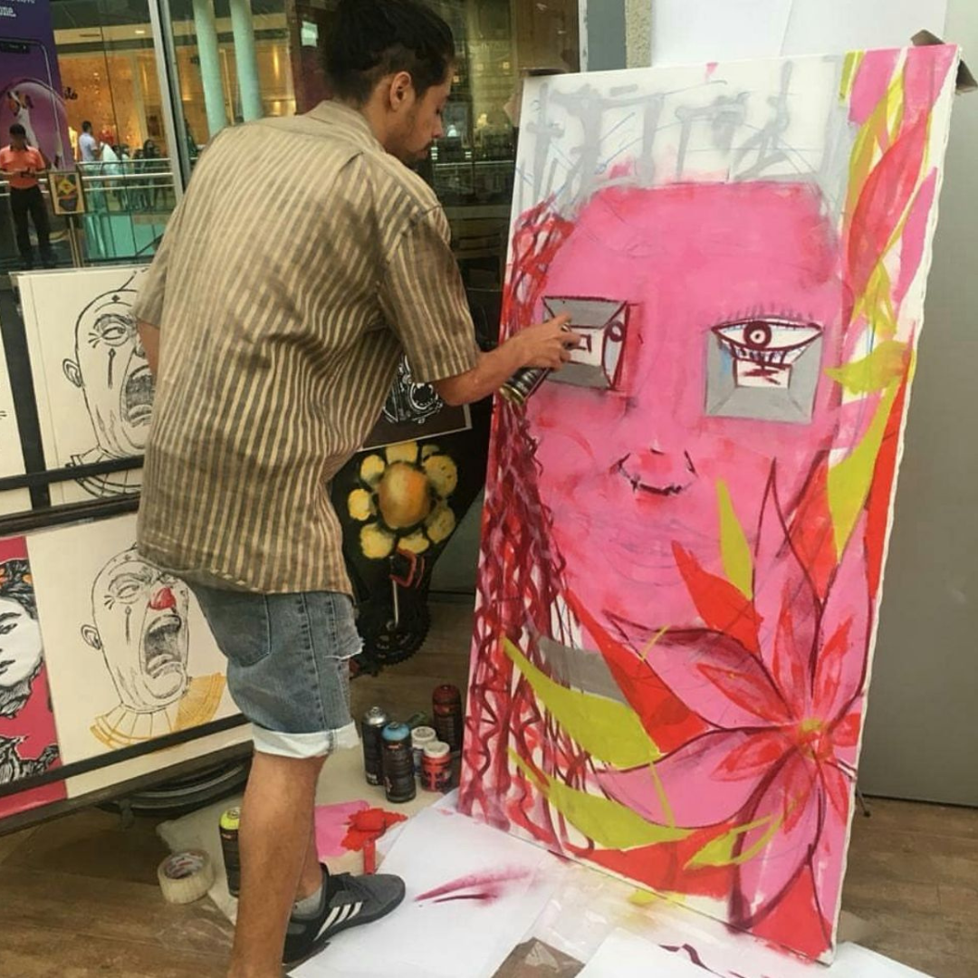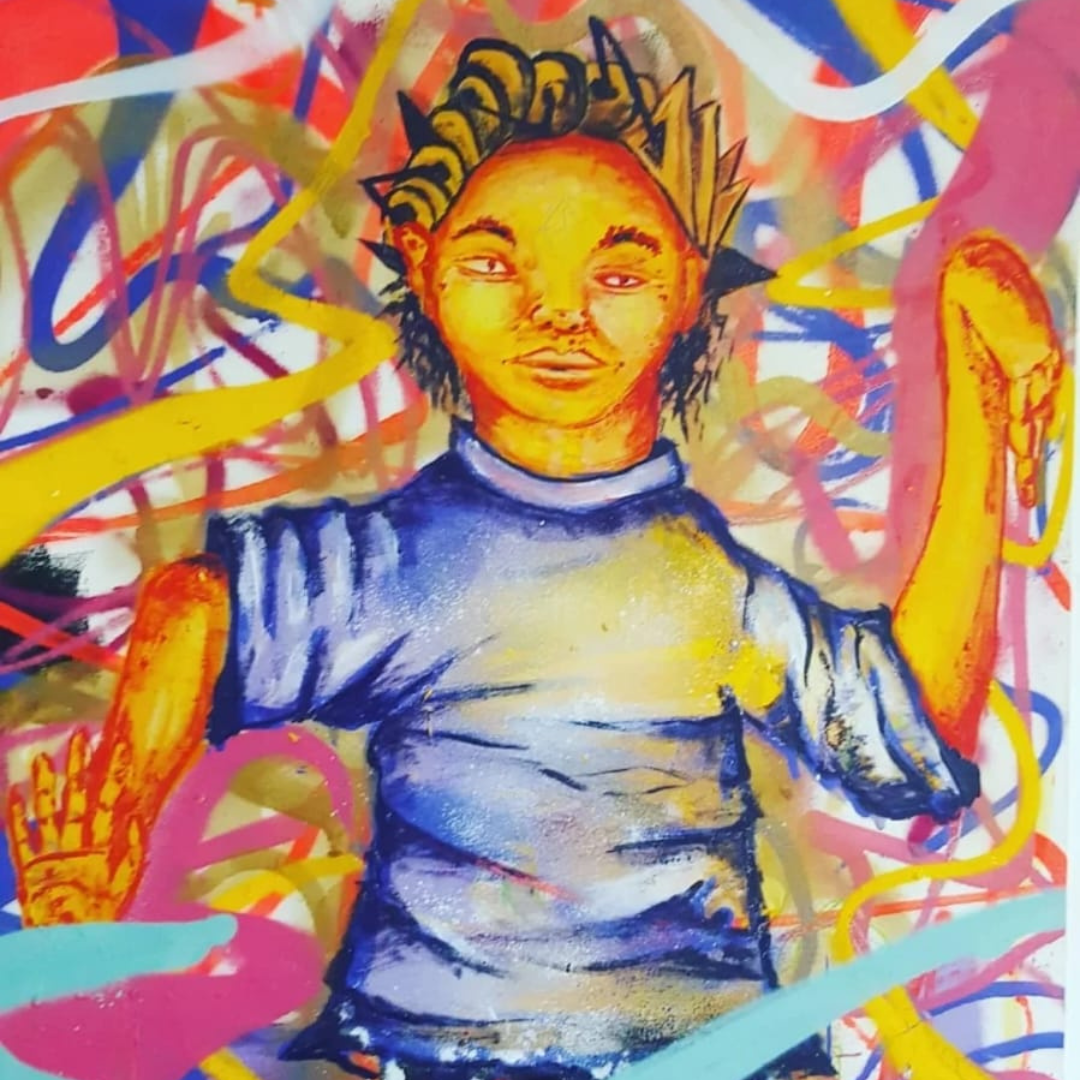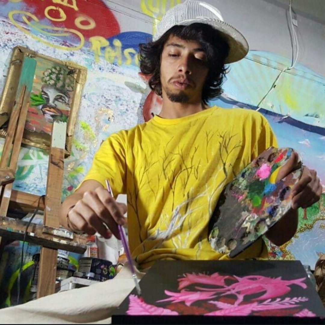 Pintura em tela & Oficina de arte: Gosto de realizar minhas pinturas com técnicas mistas, utilizando tinta óleo, acrílica, spray, caneta Posca e outros materiais. Também realizo oficinas de arte, compartilhando meu conhecimento.